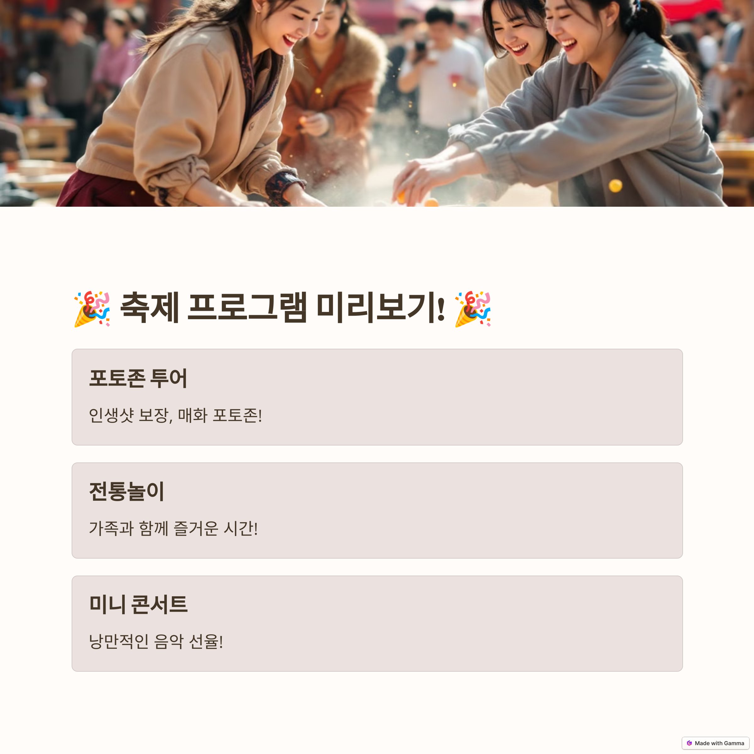 - ✔️ 전통놀이 체험 – 지역 특산품 체험과 함께 전통놀이 즐기기